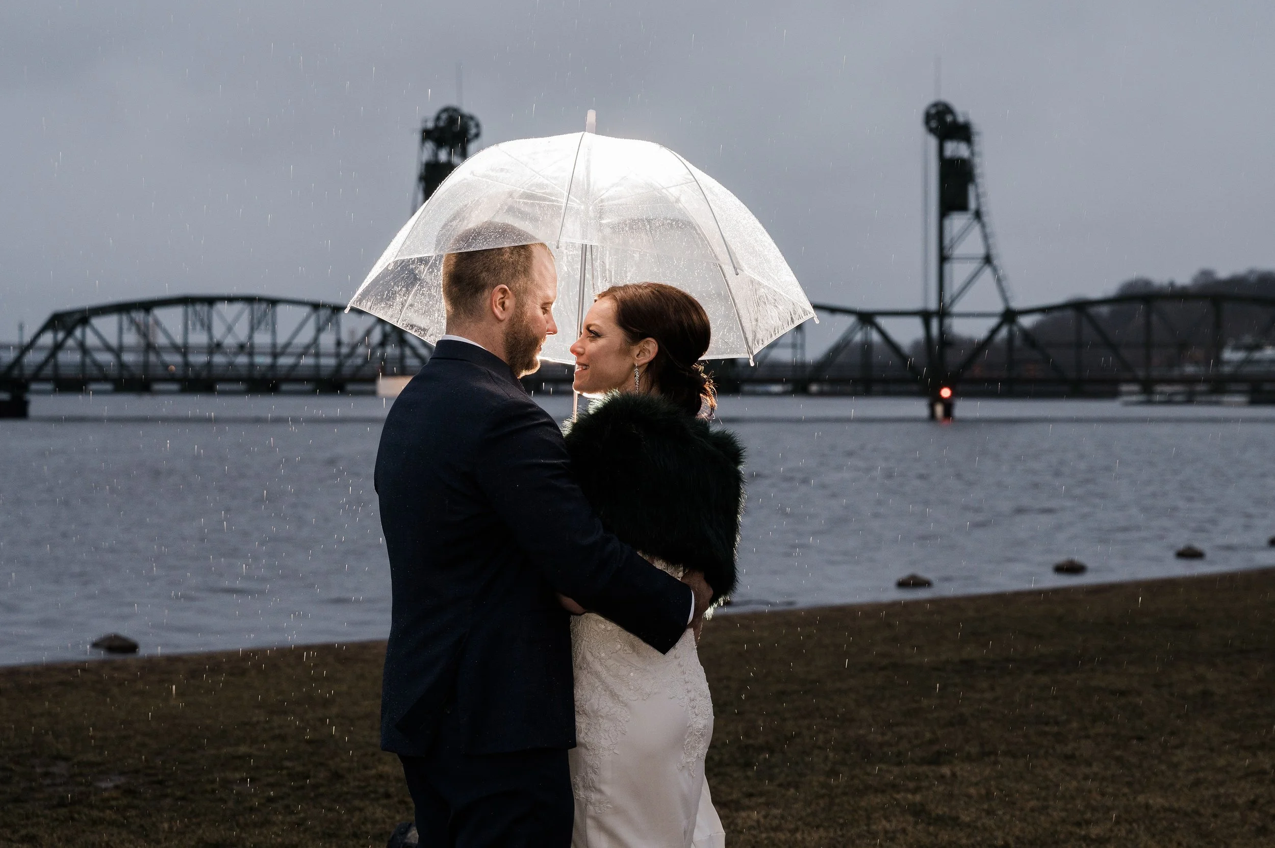 Just like this day in March when it began to rain. But Kelly their photographer still snuck them out to have a moment alone during their reception.