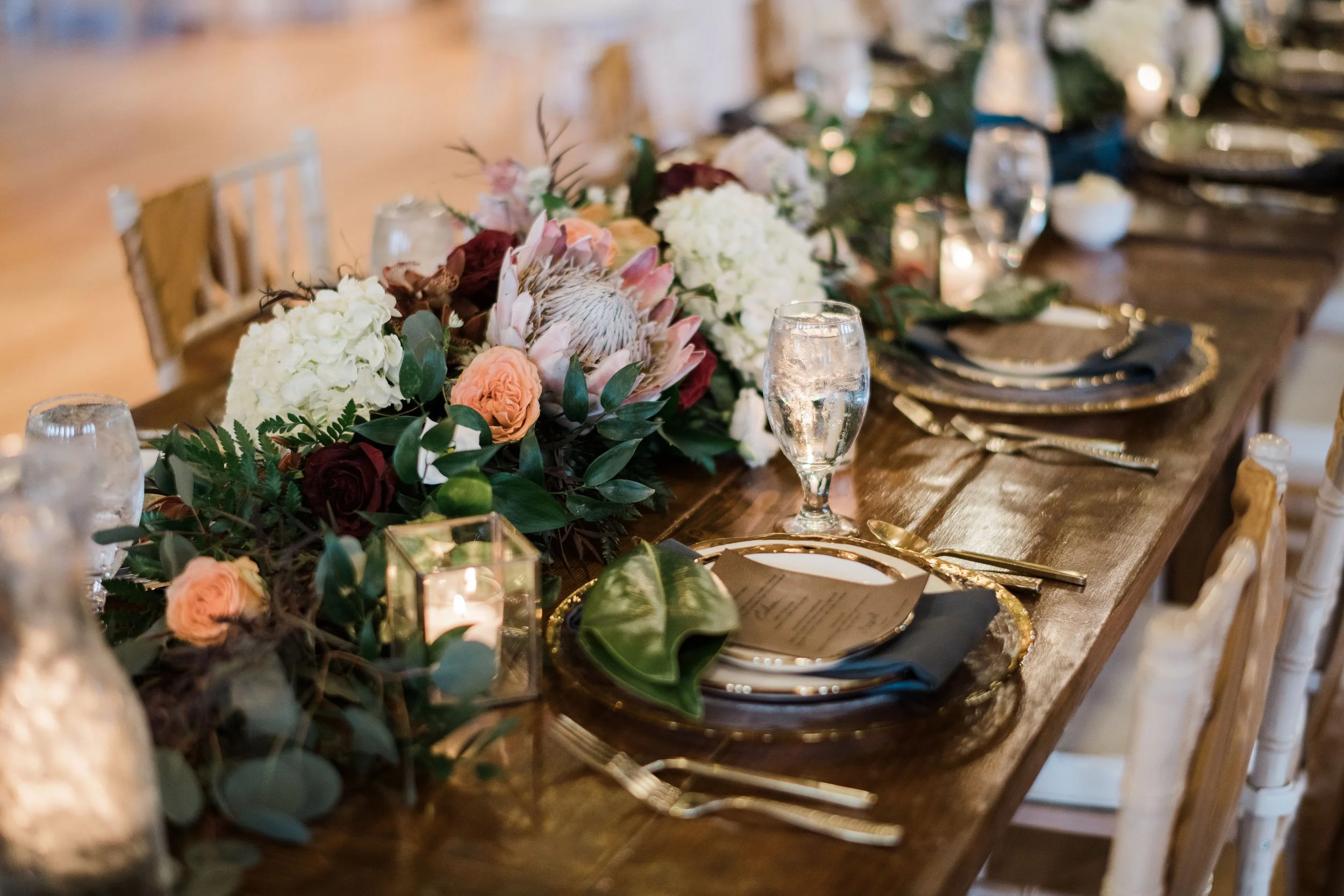 Flowers have a secret language of their own. The flowers and I had a chat and well did they have a lot to say about Haley and Bob’s everlasting love story. Their Bloom Story included protea, lisianthus, roses, different types of eucalyptus, magnolia leaf, cymbidium orchids, dahlias, italian ruscus, amaranthus, leather leaf, lucedendrum, hydrangea, aspidistra leaf, and heather. All of these weren’t in her bouquet but used throughout the wedding.